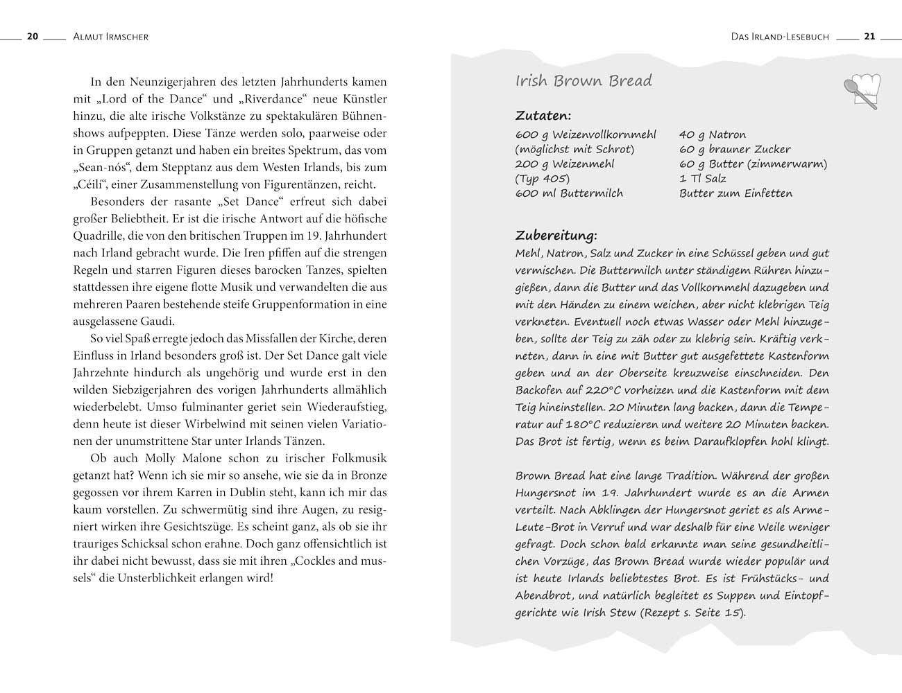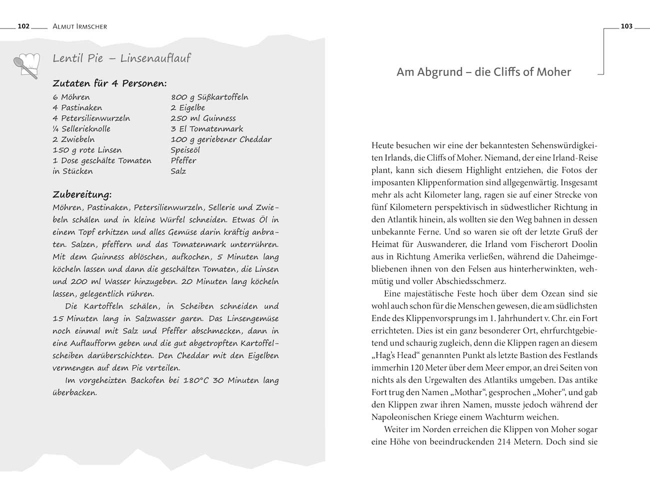 Der zwergige Kobold Leprechaun wartet schon am Ende des Regenbogens – kommen Sie mit auf die Reise nach Irland! In diesem Irland-Lesebuch präsentiert Almut Irmscher beeindruckende Bilder und mehr als 20 Rezepte, die dazu einladen, die landestypischen Spezialitäten selbst nachzukochen!