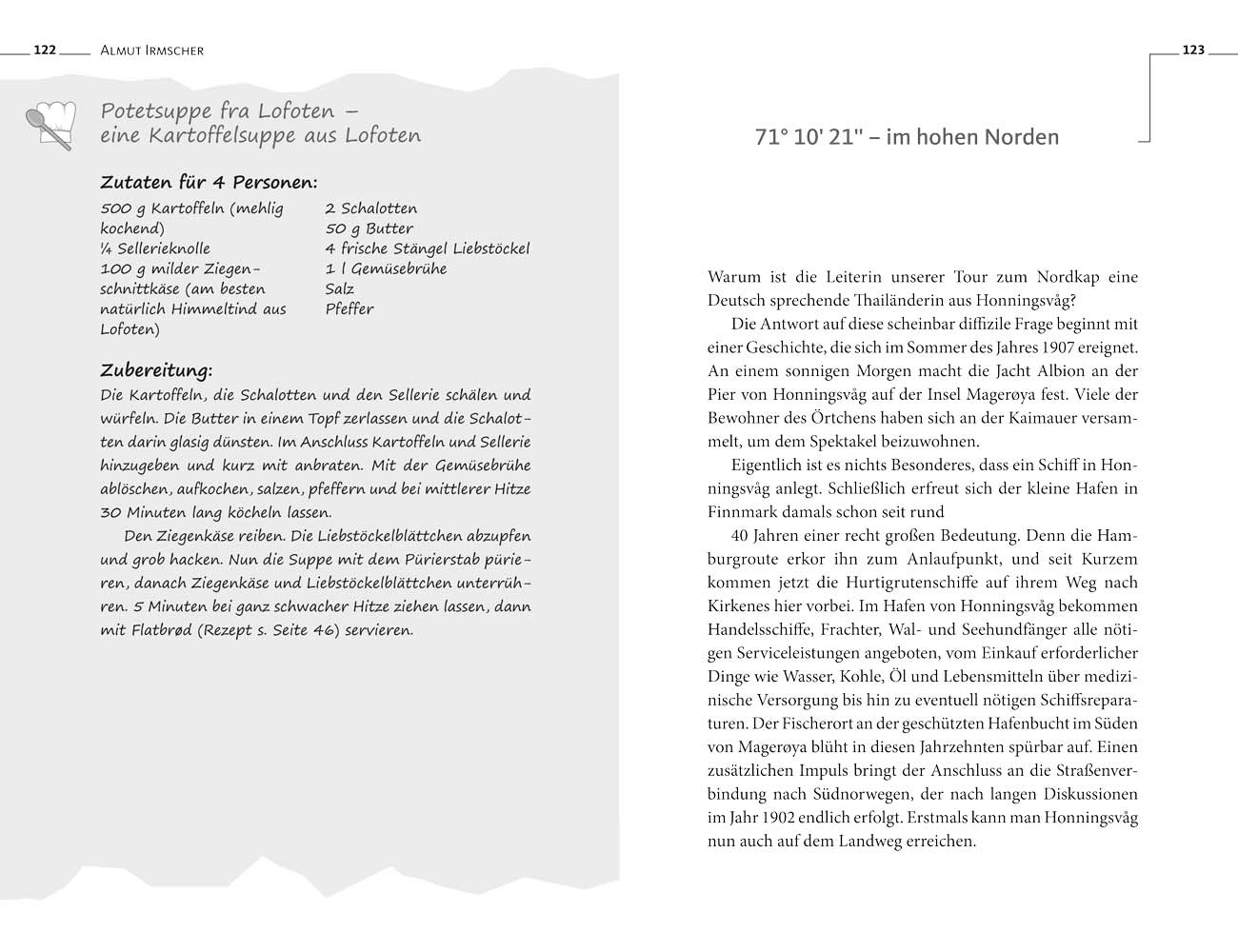 Begleiten Sie Almut Irmscher auf ihrer faszinierenden Reise durch Norwegen. Jahrtausendelang haben Menschen mit dieser wilden Natur im Einklang gelebt und eine erstaunliche Kultur erschaffen. Dieses Norwegen-Lesebuch erzählt von nordischen Landschaften und Städten, von Künstlern, Königen und Trollen. Der fantastische Weg der Hurtigrutenschiffe rahmt den bunten Reigen, fein abgeschmeckt mit mehr als 20 Rezepten aus der eigenwilligen norwegischen Küche zum Nachkochen und verfeinert mit beeindruckenden Bildern.